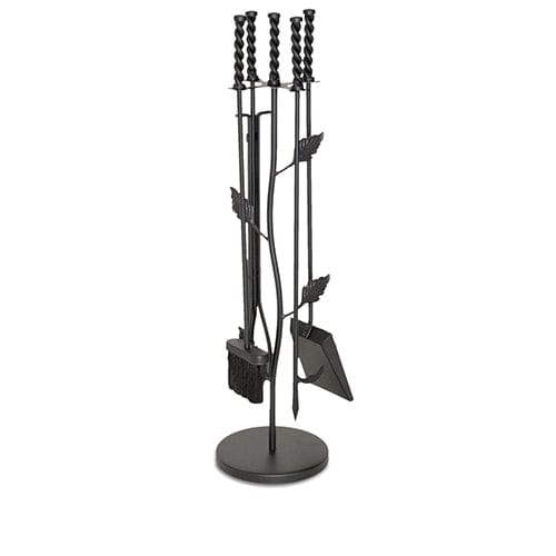 "5 Piece Garden Leaf Fireplace Tool Set, Black"