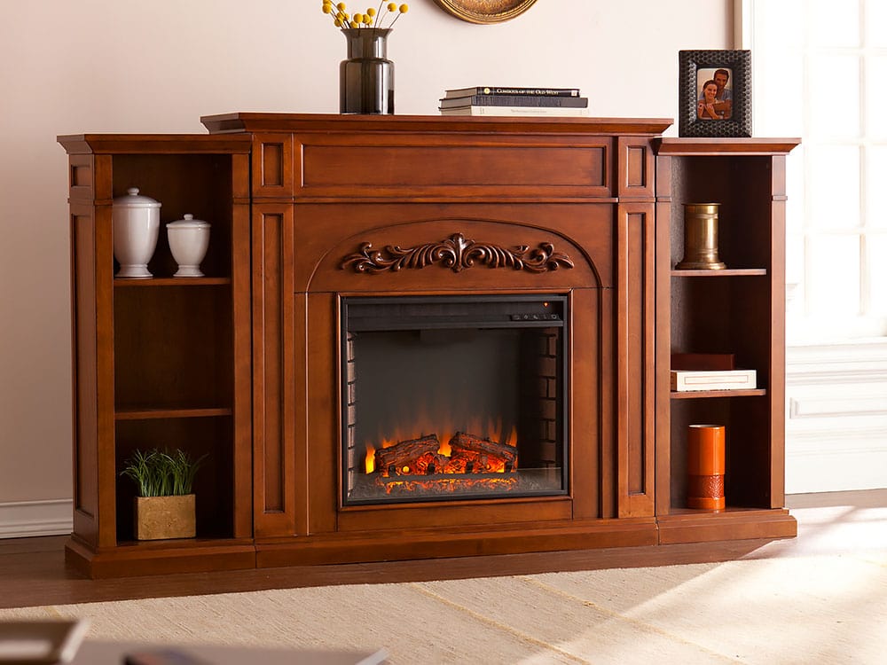 "Chantilly Electric Fireplace Mantel w\/ Bookcases in Autumn Oak"