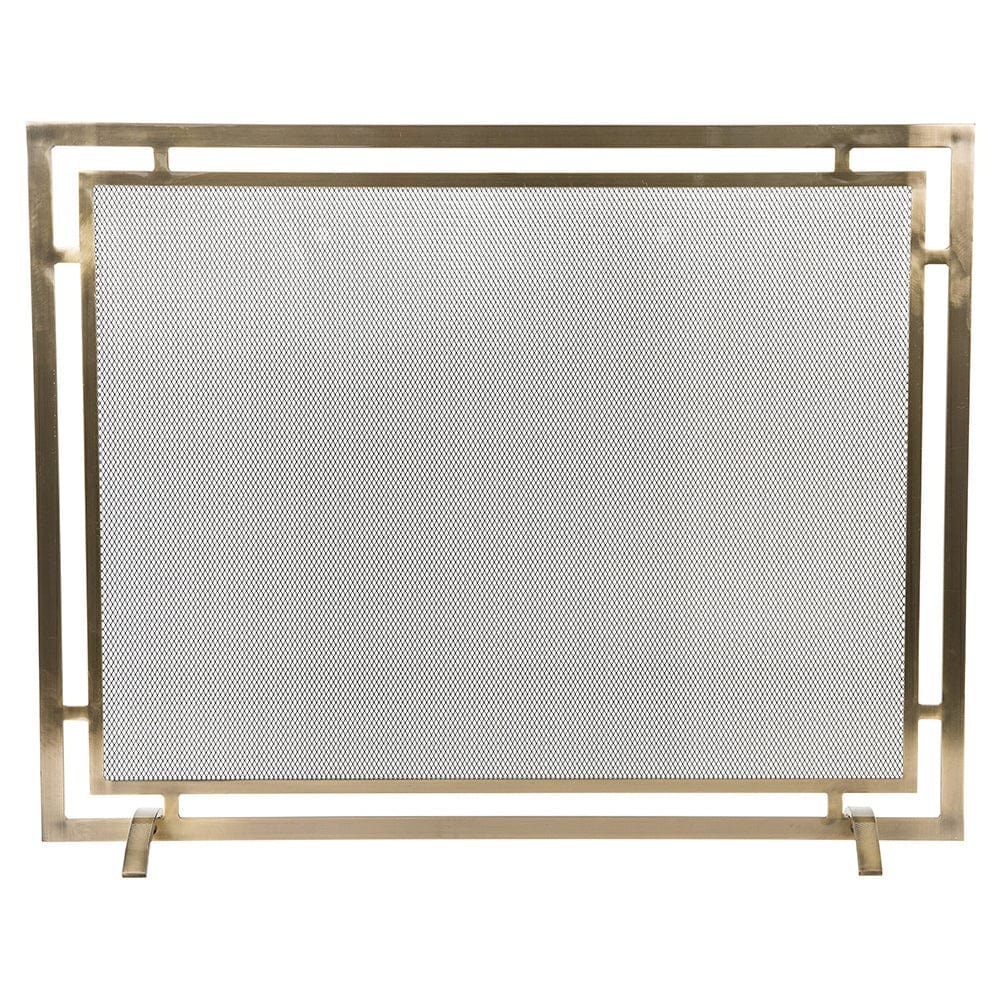 "Gatsby Single Panel Fireplace Screen in Aged Brass"