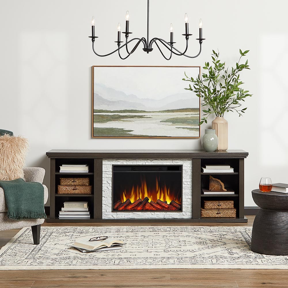 "Kenai Slim 72-in Electric Fireplace TV Stand in Dark Oak"