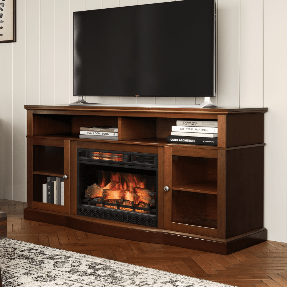 "Walker 60-in Electric Fireplace TV Stand in Dark Cherry"